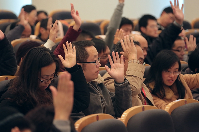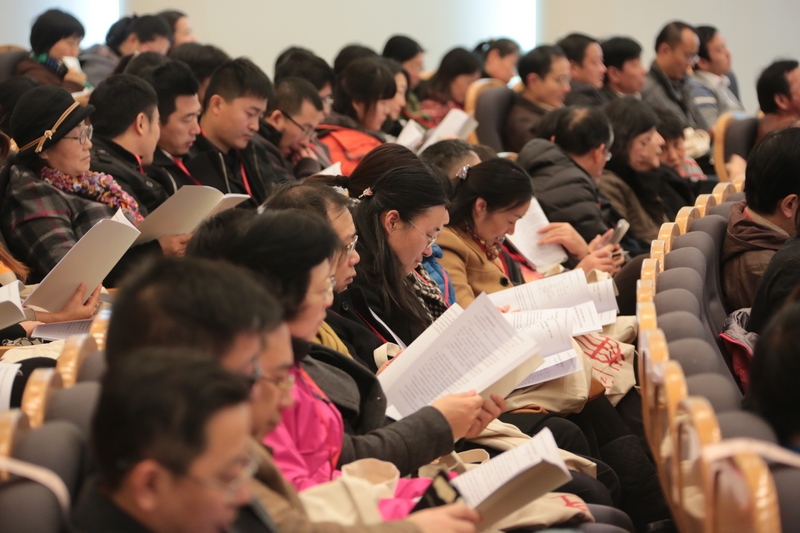 图片二:与会代表听取和审议会议各项工作报告