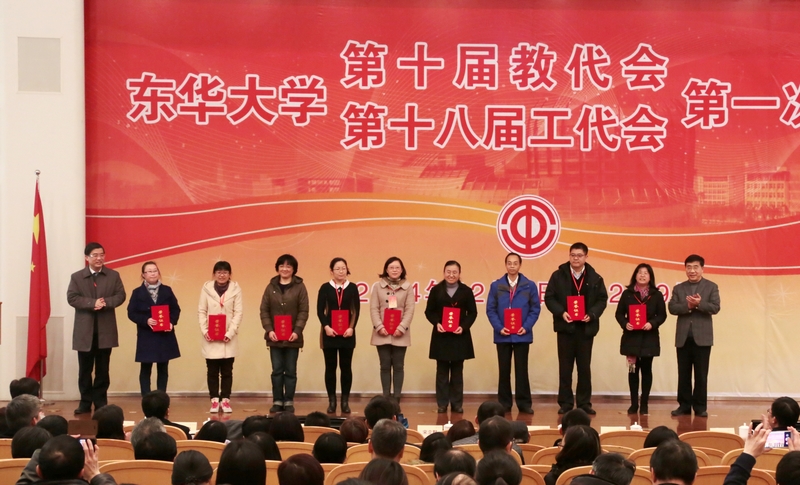 图片六:大会表彰了2009——2014年度校先进教工小家和工会积极分子,2009——2014年度校教代会优秀代表和优秀提案。