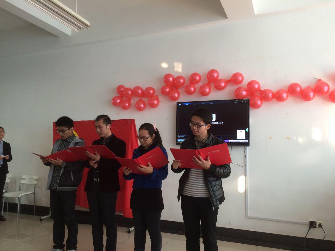 本次活动以“党永在我心,感恩露真情”为主题,围绕“我与党的故事”“朗诵与宣誓”“庆生仪式”等内容展开。在“我与党的故事”环节,刘雯玮老师跟学生党员分享了自己在党组织中的成长经历。学生党员代表分享了各自积极主动发挥党员先锋模范作用,为身边的群众服务的故事。学生党员们还现场朗诵了自创诗歌《颂歌献给党》,并用手语演绎了歌曲《感恩的心》抒发对党的感恩之情。全体学生党员还面向党旗重温了入党誓词。“庆生仪式”环节中,15名“过生日”的学生党员收到了学院党支部精心准备的“生日礼物”,感受到党组织对学生党员的关爱。。学生党员代表也为老师送上贺卡,表达他们的感恩之心。
