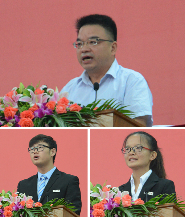 来自云南大理白族自治州的管理学院马兴杰同学作为新生代表发言。“奋发图强,未来将是我们的时代”,这位标准“95后”喊出了2015级新生的共同心声。在马兴杰看来,“厚德”“求知”和“创新”是大学的题中之义,作为一名新东华人,不仅要以初学者的心态面对新的人生挑战,珍惜并过好在东华的每一天,更要像钱宝钧先生等老一辈东华人那样“不为一己求安乐,愿做别人嫁衣裳”,为国家和民族贡献毕生智慧和力量。