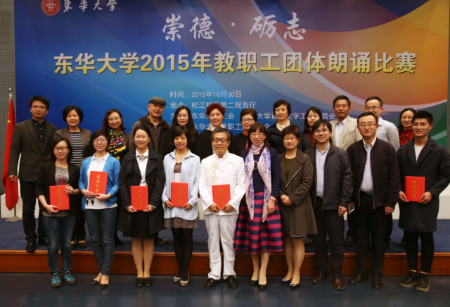 10月30日,我校“崇德·砺志”教职工团体朗诵比赛在松江校区举行,共有来自各学院部处的15支队伍参赛。经过比拼,机关团队凭借作品《我爱东华》夺得一等奖,人文学院、计算机学院分别凭借作品《中国人,不跪的人》、《我是一段程序》分获二等奖,三等奖则由纺织学院、图书馆和机械学院凭作品《织·行》、《图书馆》和《教师之歌》摘得。