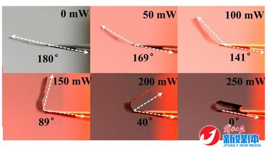 石墨烯纸在不同光控和温控条件下迅速完成180度的折叠。