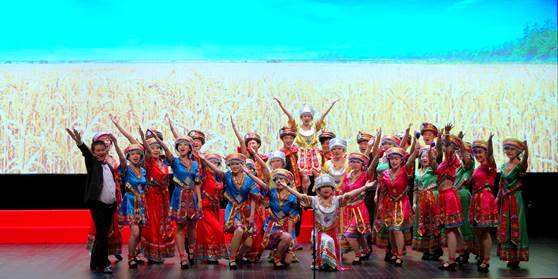 在演出现场,合唱团全体团员身着美丽的阿美族服饰,动情演唱《飞来的花瓣》、《丰年祭》两首曲目,给台下观众带来了完美的视觉和听觉体验,展现了东华MBA的风采。