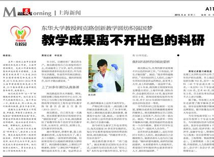 五年一届的上海市全国劳动模范和先进工作者,上海市劳动模范、先进工作者和模范集体评选结果日前揭晓。上海教育系统共有7人当选2015年全国劳动模范和先进工作者,52人当选2010-2014年度上海市劳动模范和先进工作者,13个集体荣获上海市模范集体称号,成绩喜人。晨报与上海市教卫工作党委、市教委、市教育工会联合,今起推出“劳模精神在校园”专栏,希望这种低调而有腔调的劳模老师精神,能让社会更多的人知晓。理解他们,支持他们。