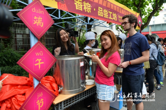 今年的端午文化活动以“粽”情五洲为主题,来自世界五大洲的留学生们入乡随俗,在“端午街”与中国传统习俗零距离接触,留学生们纷纷表示要把这种文化带回自己的国家。