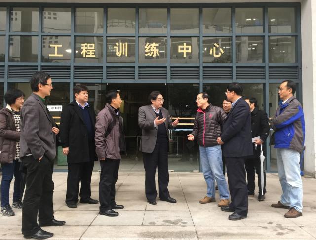 随后,蒋昌俊一行在学院班子成员的陪同下,走访了教师办公室、教学、科研实验室及工程训练中心。针对陈旧已淘汰的老设备,蒋昌俊建议,可以变废为宝,有规划地陈列在室外,作为校园文化建设的一部分,既可腾出空间,又可传承特色,成为一道靓丽的风景线。