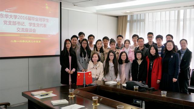 3月24日、25日,2016届毕业班学生党支部书记和学生党代表交流座谈会分别在延安路校区和松江校区召开,校党委副书记、党委组织部部长、党校常务副校长崔运花出席,部分学院党总支副书记、党建辅导员、毕业班学生党支部书记、学生党代表及组织部相关人员参加座谈会。会议由党校副校长徐玥主持。