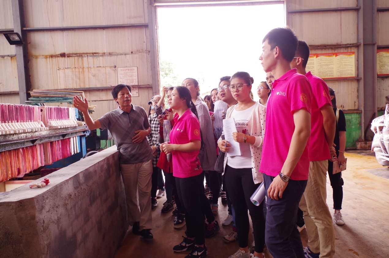 此外,实践团还分别赴江苏省吴江市桃源染料厂、江阴市安凯特科技股份有限公司展开企业“三废”处理情况调研,在染料厂调研工程废渣情况、在磺化车间调研废气问题、在污水厂调研废液处理问题,追踪企业“三废”产生路径。