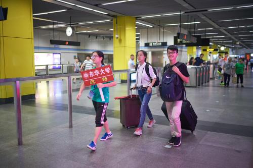 9月10日,东华校园迎来5417名2016级新生。3409名本科生和2008名研究生怀着憧憬和希望从祖国各地来到东华,开启他们崭新的大学生活。校党委书记朱民,校长蒋昌俊,党委副书记刘淑慧、崔运花,党委副书记、纪委书记金海燕,副校长刘春红、邱高、李永智等校领导先后来到迎新现场,分别在地铁站迎新点、新生报到处、慈善爱心屋、新生宿舍等处看望新生,慰问学生志愿者和迎新工作人员。