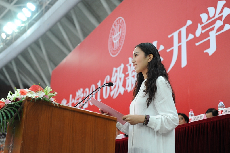 9月11日,我校举行2016级新生开学典礼,五千余名新生共聚松江大学城体育中心冰球馆,开启大学生涯新篇章。