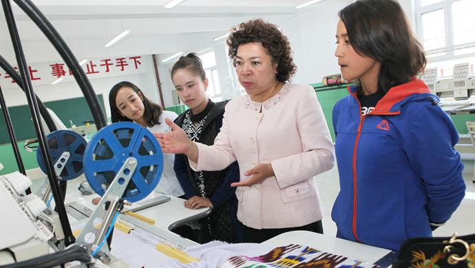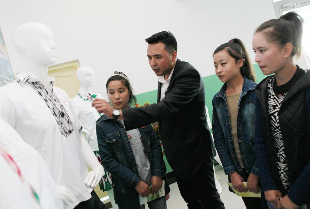 (喀什中等职业学校校长吐逊古丽给首届纺织服装专业学生讲解专业知识)