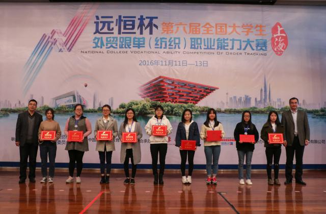 11月12日,由中国纺织服装教育学会与教育部高等学校纺织类专业教学指导委员会联合主办,我校和上海远恒电子工程有限公司共同承办,上海华申进出口有限公司协办的第六届全国大学生外贸跟单(纺织)职业能力大赛在松江校区举行。来自全国35所高等院校的48支参赛队伍,共146名参赛选手就外贸跟单理论知识与实务操作两部分展开激烈角逐。我校荣获团体一等奖,纺织学院代表队的方梦珍、谭恒媛两位同学分获本科生组一、二等奖,管理学院代表队的张春蕾获本科组二等奖,李彤和黎玉丹获本科组三等奖。纺织学院郭建生、刘蕴莹两位老师获“优秀指导教师”奖。