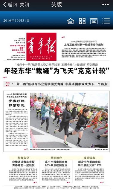[青年报] 年轻东华“裁缝”为飞天“克克计较”(2016年10月31号)