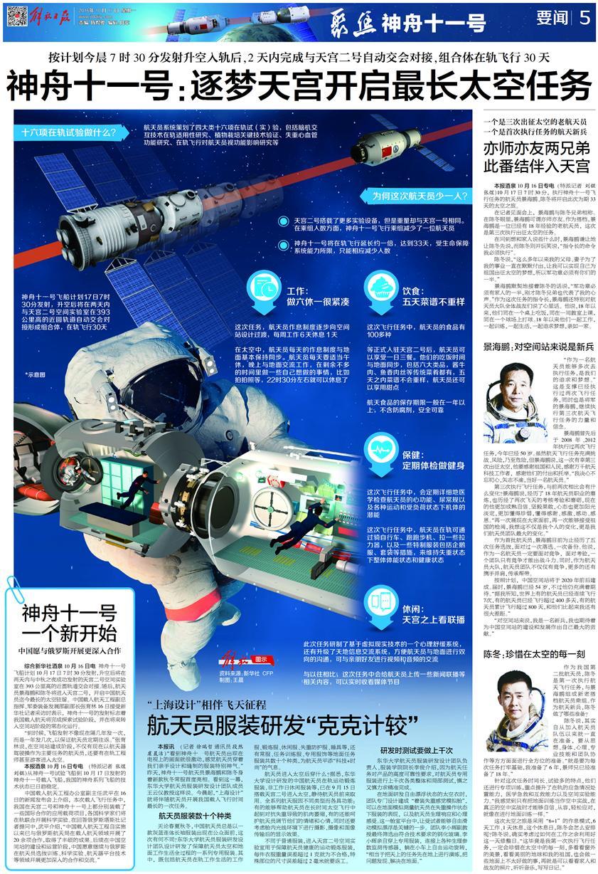 [新民晚报] 神舟十一号太空之旅丨神舟十一号背后的上海传奇 (2016年10月17日)