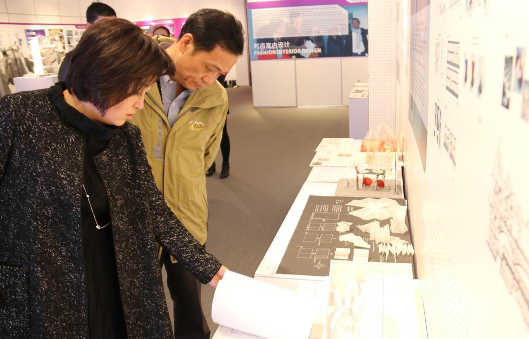(调研人员参观上海国际时尚创意学院及学生创意作品展)