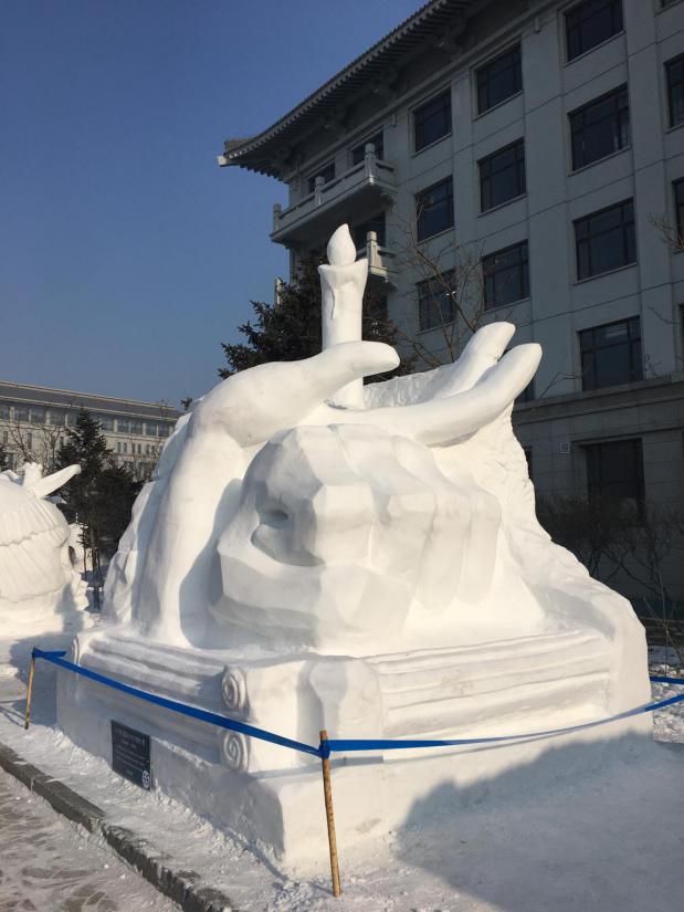2017第九届国际大学生雪雕大赛近日在哈尔滨举行,我校机械学院工业设计专业学生娄爽团队完成的参赛作品《停战》荣获三等奖。