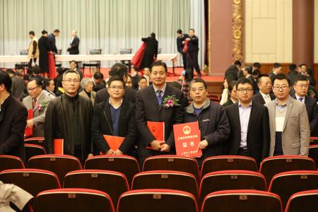 (靳向煜研究员(左三)与吴海波高工(左四)代表团队领奖)