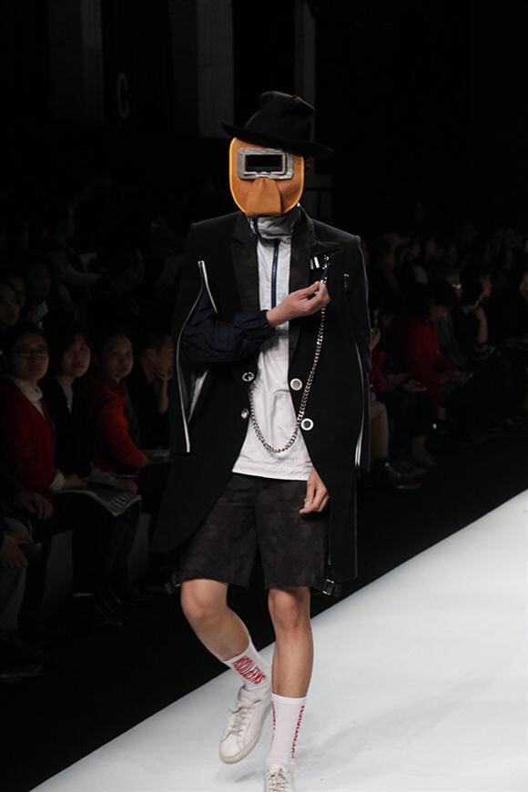 而在此次发布会上,受到防雾霾口罩启发而设计的“面罩”系列服装也让观者大开眼界——原来防霾服还可以这么酷。