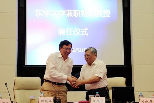 5月31日,我校兼职特聘教授侯惠勤教授聘任仪式在松江校区举行。校党委书记朱民在聘任仪式前会见了侯惠勤教授,代表学校向侯教授给予我校马克思主义学院发展所做出的贡献表示衷心感谢。校党委副书记刘淑慧、副校长卿凤翎出席聘任仪式。人事处、人才办负责人及马克思主义学院师生代表与会,人才工作办公室主任李炜主持仪式。