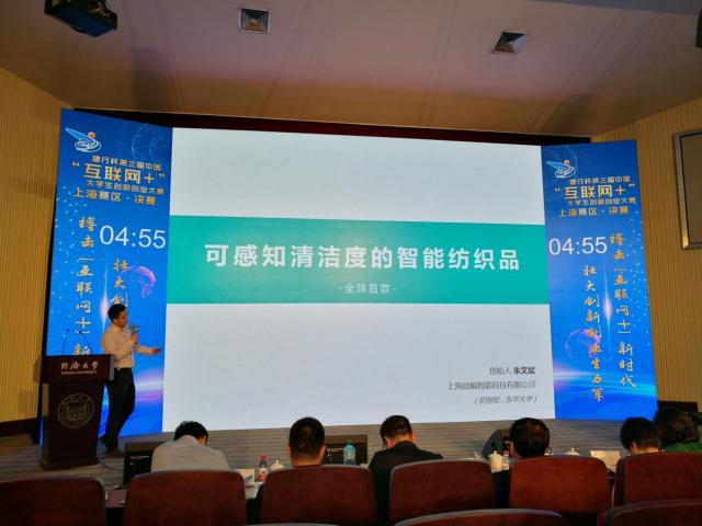 今年3月,我校由校团委牵头,教务处、研究生部、学生处、学生就业服务中心、东华镜月资产经营有限公司、上海市大学生科技创业基金会东华分会联合启动了校内赛。校内赛共吸引50个项目参与,经过计划书筛选、校内培训、校内答辩等环节,选送5个项目参加上海赛区复赛。最终《植觉生活——全球首款能感知清洁度的智能纺织品》、《声波炮灭火器》两个项目进入上海市决赛。