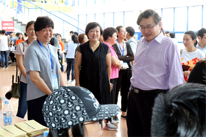 (蒋昌俊校长了解迎新报到情况)