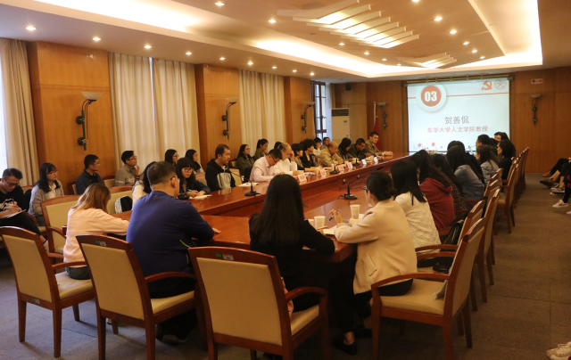 贺善侃教授在发言中谈到:当代中国完成了从站起来到富起来到强起来伟大飞跃,具有非常深远的意义,步入了中国特色社会主义新时代。新时代需要新思想,我们必须长期坚持习近平新时代中国特色社会主义思想。”