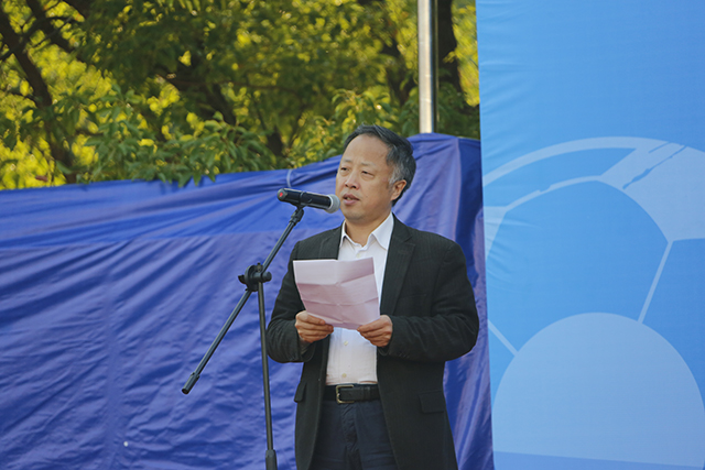 金海燕致欢迎辞,代表学校向到场嘉宾表示欢迎,向为学校足球发展做出贡献的东华人表示感谢。他表示,东华足球将秉承传统,依托社会各界支持,不断推进校园足球“群众性”“国际化”和“职业化”建设,续写东华足球的辉煌成绩。
