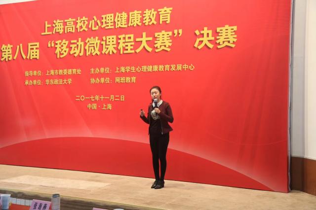 11月2日,上海高校心理健康教育第八届“移动微课程大赛”决赛在华东政法大学举行,我校学生处王肖老师在决赛现场表现出色,精彩讲授微课程《你被手机“绑架”了吗?——从“即时满足”和“延迟满足”的心理机制解读》,最终获得全场第4名的成绩。同时,王肖和魏冰老师获得网络最佳人气奖,我校心理健康教育与咨询中心获优秀组织奖。
