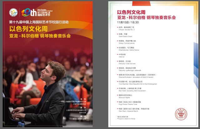 第十九届上海国际艺术节校园行——亚龙·科尔伯格专场钢琴音乐会(11月15日)