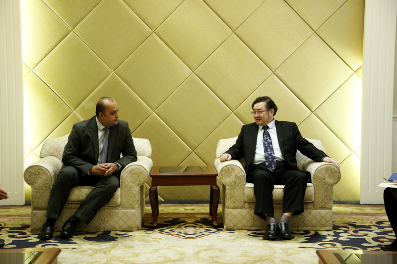 会见前后,尤诺索夫校长分别来到我校纺织学院及国际文化交流学院参访、座谈,参观了纺织学院实验中心,对我校纺织领域取得的研究成果和国际学生的先进服务及管理理念深表赞许。