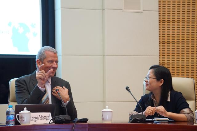 (Jürgen Margraf教授(左)在沙龙活动现场)