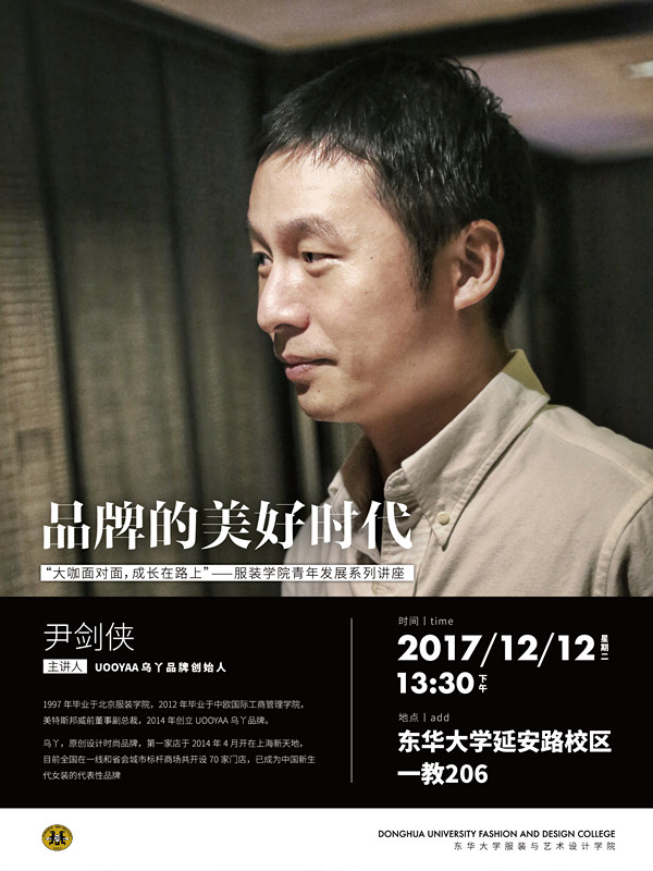 本次讲座邀请到美特斯邦威前董事副总裁、UOOYAA乌丫品牌创始人尹剑侠先生担任主讲人。他讲述了在美邦工作时收获的宝贵经验,结合当前品牌发展现状,从品牌价值、原创精神以及互联网时代的品牌逻辑等方面进行分析、总结,告诫创业者们应该回归常识的同时要颠覆传统。尹剑侠先生以他自己的原创品牌--UOOYAA乌丫为例,向在座学生详细介绍了品牌创业的经历。乌丫品牌严格执行以态度为中心,以粉丝、产品、营销、视觉、门店等为手段的管理系统,这个多元化的创作团队,以设计为乐趣,视冒险为生命,他们对时尚有独特的认识和精准的把握,并且深知中国新生代时尚人士的需求。尹剑侠先生以诙谐幽默的语言、生动有趣的例子让听众们领略了一个品牌的真实和品牌背后团队的风采。讲座过程中,他还展示了乌丫品牌2014-2018年不同主题系列服装,这也引起了同学们极大的兴趣。在互动提问环节,同学们积极踊跃的提出了关于品牌创立、运营以及管方面的问题,尹剑侠先生对这些问题都做出了耐心详细的解答,让同学们收获良多。