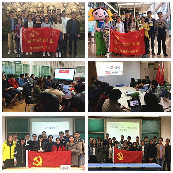 信息162硕党支部现有党员14人,支部以“学以修身思进,习以表率于人”为品牌,紧密围绕“提高理论深度、拓宽学习广度、聚焦服务精度、增强支部效度”四个角度,结合多个载体,整合多方资源,立足多重需求,发挥多层效用,深入推进“两学一做”学习教育常态化制度化,争做“学习型、创新型、服务型”党支部。支部定期开展经典著作、党章党规、党史国情等专题学习,注重加强交流研讨,不断提高党员的思想理论深度和党性修养,并以“学术促发展,竞赛促进步”为主题,搭建学术交流平台,提高党员专业理论深度,提升学术实力。此外,实行科研帮扶、科研咨询岗等定岗定责机制,开展精准帮扶,促进支部党员整体素质提升,建立“党员-宿舍-班级”三级联动机制,充分发挥党员的引领带动作用。