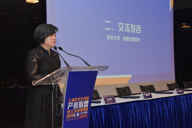 5月30日,上海市文化创意产教联盟成立活动在杨浦区上海国际时尚中心举行。市文教结合工作协调小组召集人、市文创办主任、市政府副秘书长宗明出席,并为上海市文化创意产教联盟揭牌。我校副校长刘春红代表首批联盟成员中的20所高校作交流发言,上海环东华时尚创意中心主任韩哲宇陪同参加。