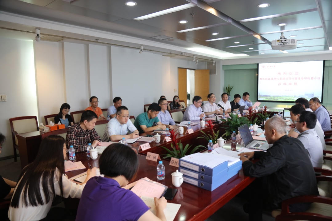 我校基建后勤处处长汤跃宁就我校在建项目规范化管理情况、申请2019年度中央预算内投资项目和“双一流”校内储备情况、“十三五”基本建设规划实施总体情况等向检查组作了汇报。