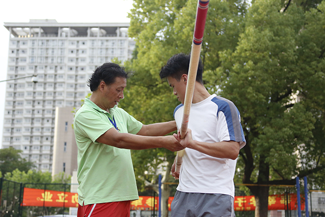 “体育的代名词就是坚持”,在采访中,袁老师反复强调“坚持”二字。在延安路校区的体育场馆里,除了每年的大年初一至初三,一年四季都能看到队员们训练的身影,室内室外、技术速度穿插训练。数九寒天,队员们冷到手握不住杆子,在取暖器前烤烤继续练;三伏酷暑,太阳就像在头顶不远处炙烤,地表温度超过六十度训练也从不间断;休息时间,袁老师还会带着运动员们反复研究比赛视频,看世界顶尖运动员的视频,也看自己的视频,一个技术一个技术的仔细分析,寻找问题和差距,然后按照正确的动作重复训练让肌肉产生记忆。“想要让肌肉记住正确的动作,每个动作要重复至少一万次,才能由量变产生质变,让正确的动作变成自身的条件反射”,袁老师说。