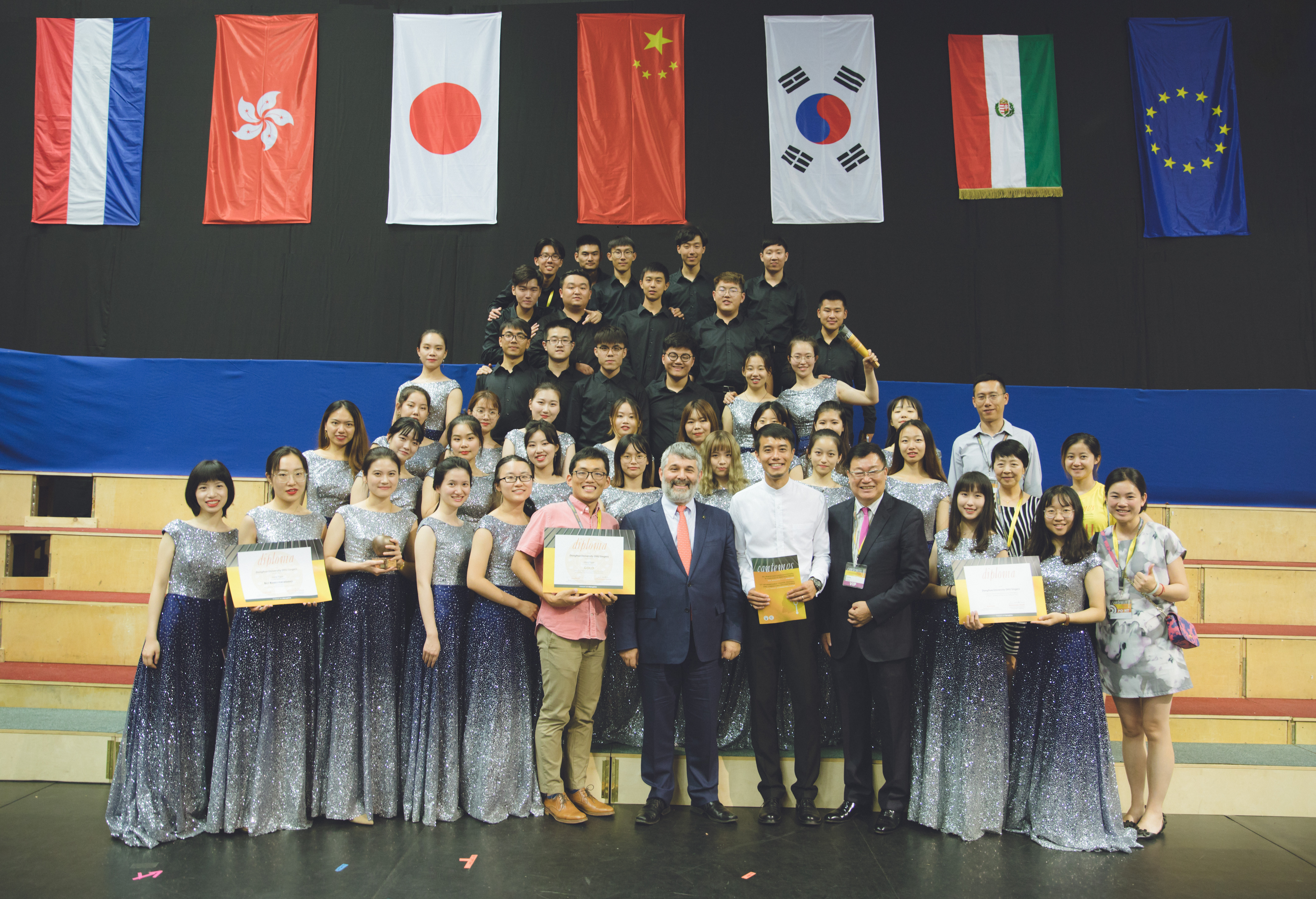 北京时间8月20日晚,第十二届康特姆斯(Cantemus)国际合唱节在匈牙利落下帷幕。我校学生合唱团DHU Singers(以下简称“合唱团”)凭借出色的表现一举夺得金奖及唯一的柯达伊作品最佳演绎奖(柯达伊为匈牙利著名作曲家,大赛规定其作品为每支队伍必选参赛曲目),这是合唱团获得的历史最好成绩。