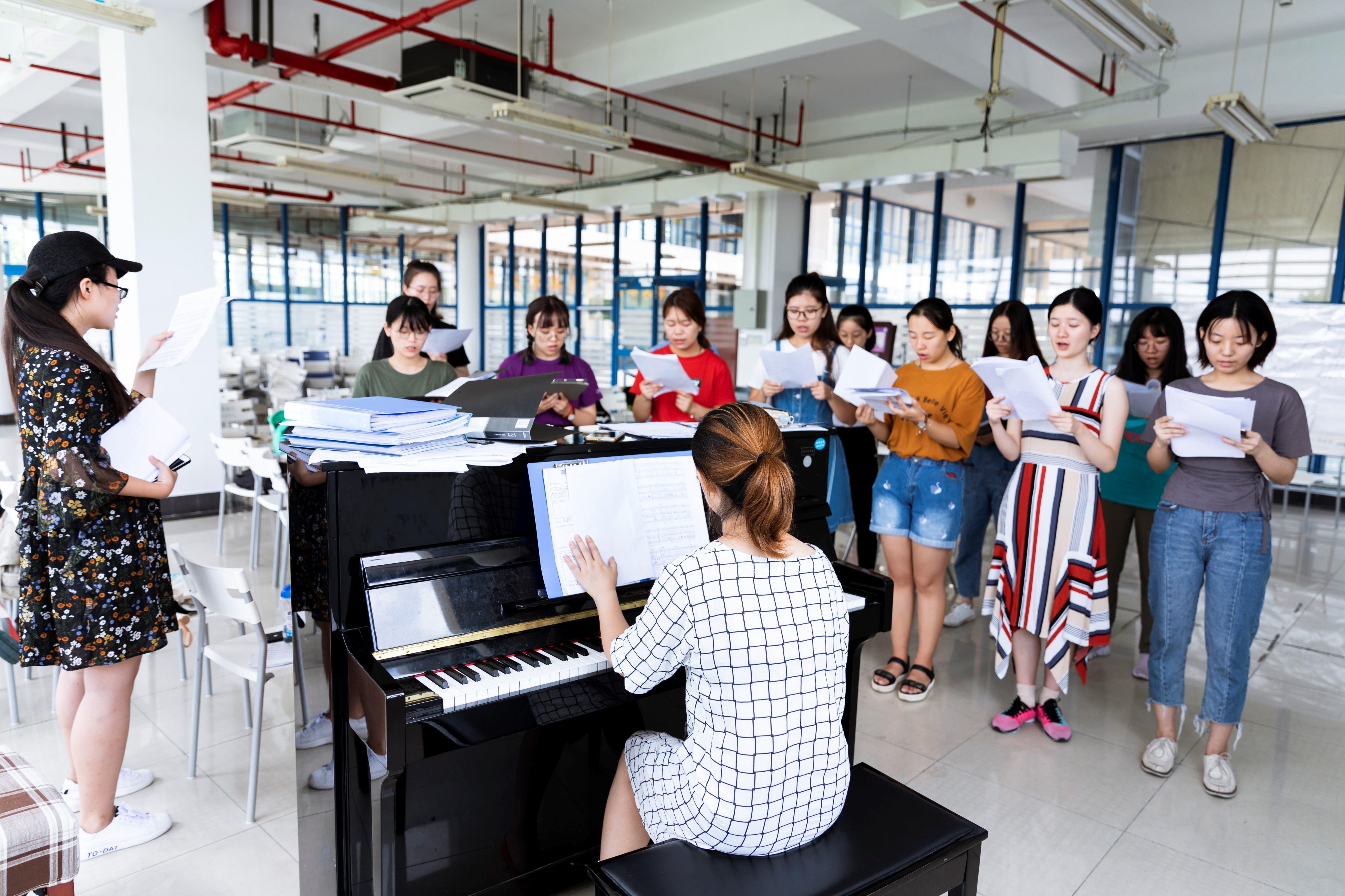 合唱团获得金奖离不开指导老师付出和所有团员的努力。八月炎夏,酷暑与台风交织,在静谧的东华校园里,流动着动人的歌声,原来是合唱团指导老师和学生们顶着酷暑放弃休息来校进行第二次集训。如此高水平的比赛、实力强劲的各国对手,这次挑战激发了团员们的斗志,大家都卯足了劲进行赛前排练,力求提升作品呈现的精细度。艺术教育中心的老师们分工合作,龚铭夏老师和张艳婷老师负责声乐指导和各声部排练,梁宇球老师负责整体排练。延安路的同学们每天一大早就从市区赶到松江排练到晚上,不少同学放弃了假期休息留校苦练备战,一遍又一遍,不停地重复,不断地打磨,精益求精。合唱团团长、化工生物学院2015级本科生胡浩楠感慨道,每一句歌词,每一个声调,我睡觉闭着眼睛都能哼唱出来。胡浩楠说:“虽然我们大部分不是科班出身,但是大家对音乐无比热爱,对这个团队爱得深沉!金奖其实只是附属品,最重要的收获是团员们一起努力付出与成长的过程。”