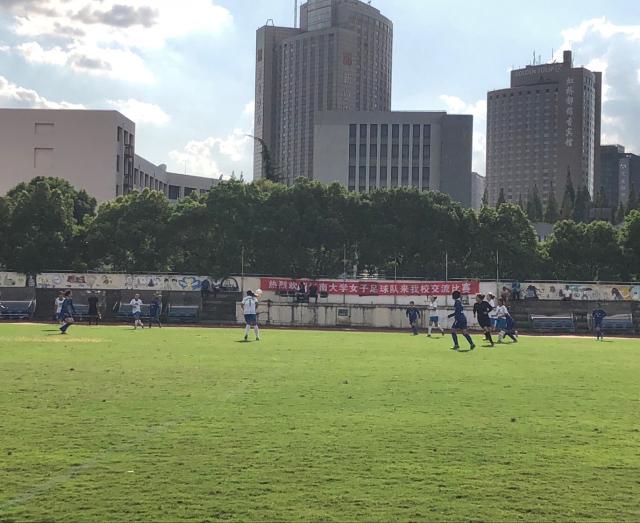 98日下午,江南大学女子足球队一行28人来到我校延安路校区,与校超级组女子足球队进行交流比赛。
