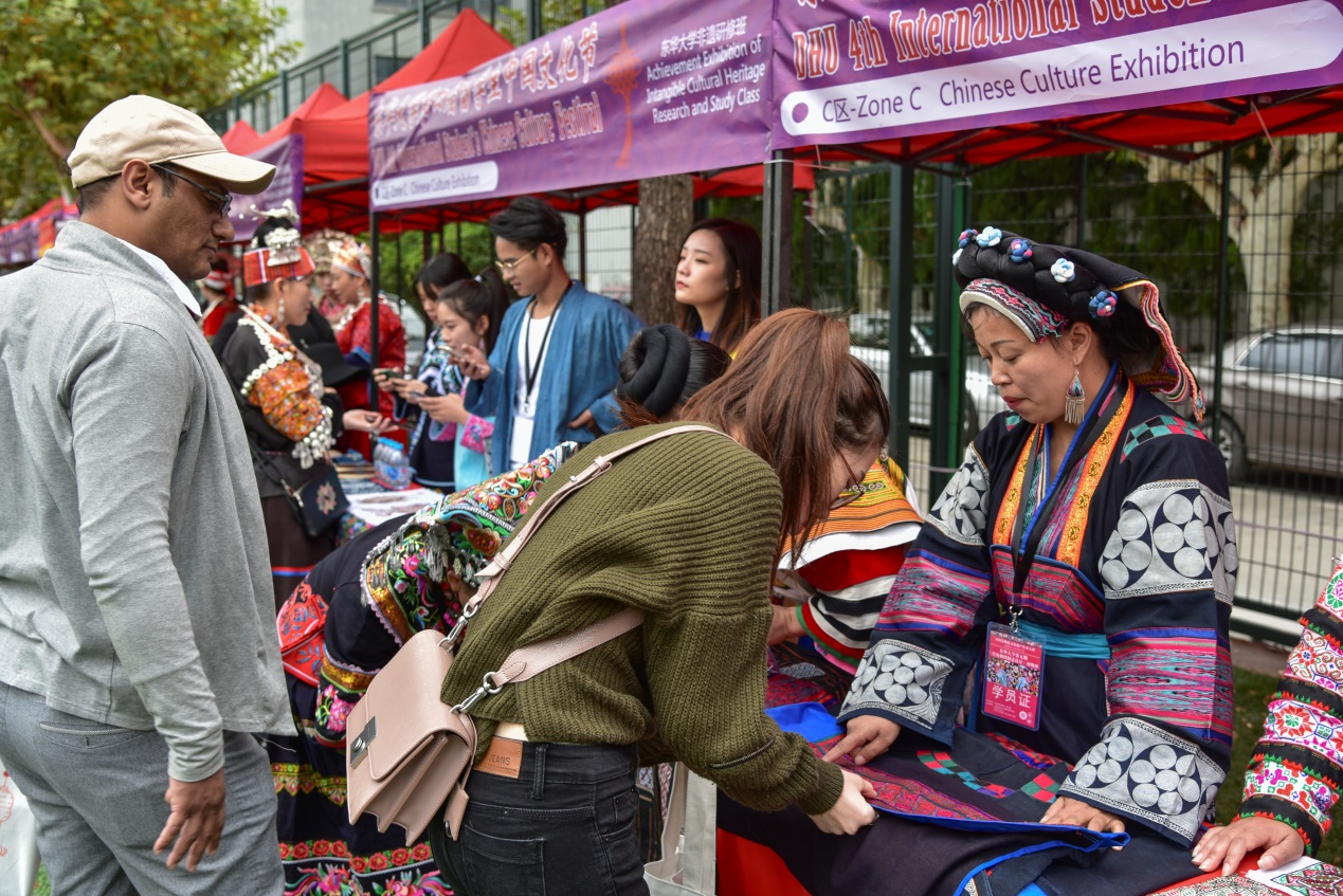 10月20日,我校举行庆祝建校67周年系列活动,国际文化交流学院第四届中国文化节同期举行。服装与艺术设计学院非遗教育研究中心充分利用学校的国际教育资源,结合留学生中国文化节,紧扣文化节“迎进博,共参与,学非遗,知中国”主题,将第五期传统刺绣创意设计非遗传承人研修班的课堂搬进了会场,以动静结合的教学研修形式立体呈现传统刺绣的工艺、魅力。中新社、新民晚报、外语频道、上海教育电视台等诸多媒体关注报道。