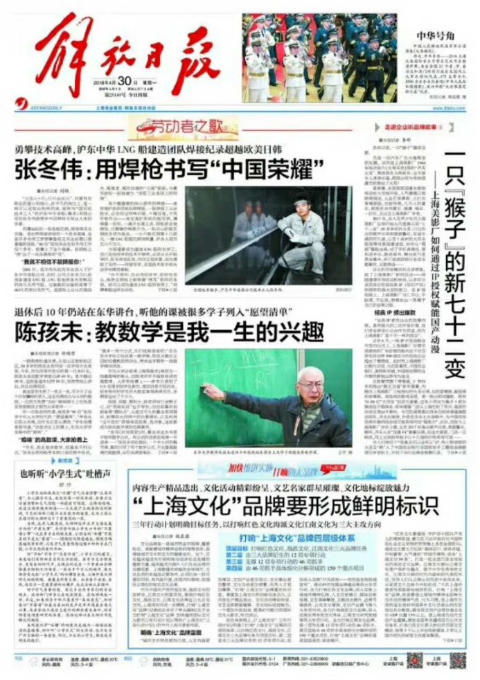 (来源:解放日报 2018年4月29日 记者:徐瑞哲)