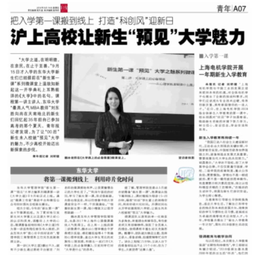 将课堂从线下搬到线上,课时缩短为每讲15到20分钟,管理学院党委将“新生第一课”的开课时间也从开学初提前到入学  前,让新生足不入校就能“预见”大学魅力。