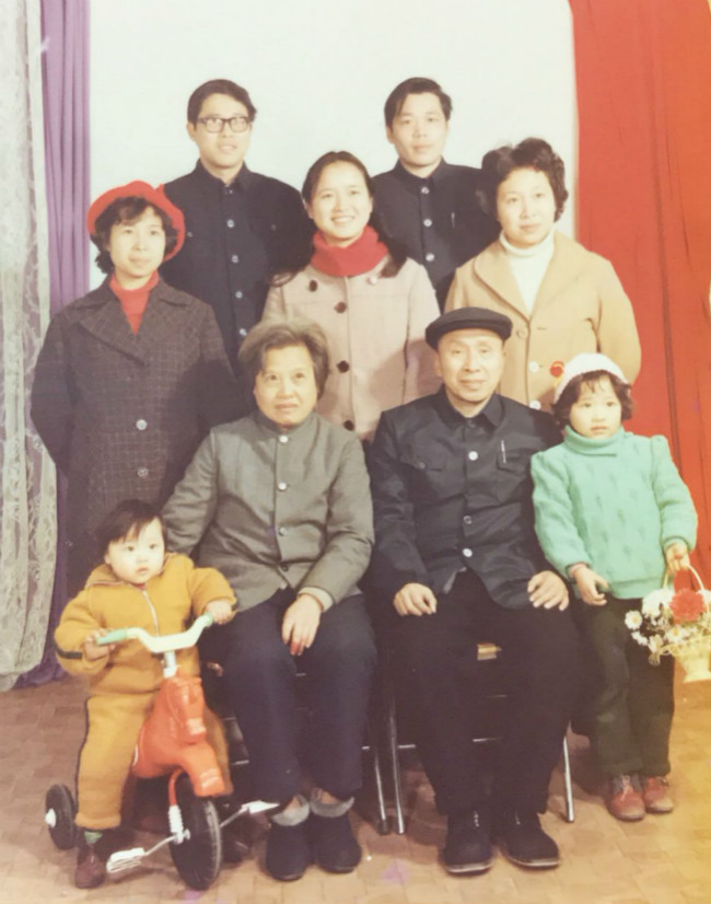 ▲林旭(中排左二)大学时与父母、两位姐姐、姐夫,以及外甥女合影
