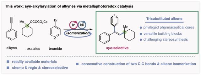(可见光与镍协同催化的炔烃顺式选择性烷基芳基化反应)