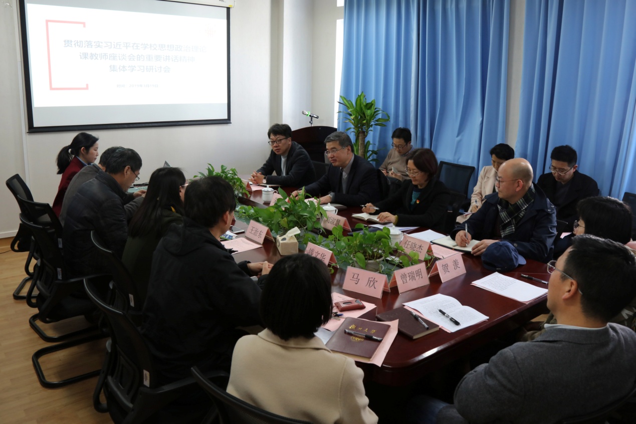 会上,与会人员重温了“习近平主持召开学校思想政治理论课教师座谈会”相关新闻报道,陈向义、曾瑞明、邬思源、陆益军、王治东、贺羡、马欣等7位思政课教师代表先后发言。他们表示,作为高校一线思政课教师,聆听了习近平总书记在座谈会上的讲话备受鼓舞,深刻感受到党中央对思政课建设和立德树人工作的高度重视,并结合教学科研工作实际,就增强思政课教师职业自信、事业自信,更好发挥思政课教师教学改革创新的积极性主动性创造性,不断提升思政课教学质量和育人成效等交流了学习体会,提出了工作建议。