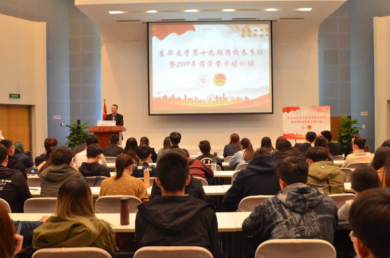 共青团上海市委学校部部长徐豪出席开班仪式并讲话。他指出,团学骨干必须不断学习,坚定理想信念,永葆家国情怀,加强实践锻炼,练就过人本领,夯实组织建设,在增强对新思想的政治认同、思想认同和情感认同上下功夫。校团委书记沈洁介绍了我校2019年共青团工作重点,希望全体团学骨干能够带领广大团员青年推动新时代东华共青团工作开创新局面、实现新发展,以优异成绩庆祝五四运动100周年、新中国成立70周年。学员代表、学生会主席单泽润结合近期网络上对某些高校学生干部的评论,围绕学生干部的表率作用、学生组织的吸引力等问题提出自己的思考,并希望在骨干培训班中与团学骨干共同探索创新实践路径。
