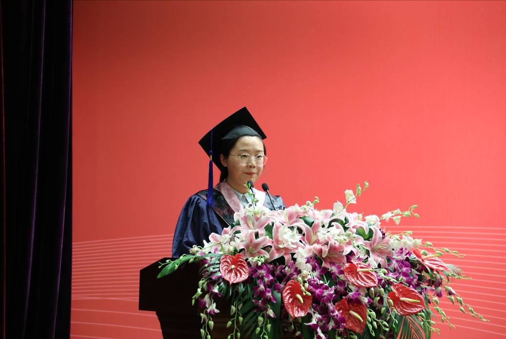 纺织学院顾伯洪教授、旭日工商管理学院郑斐峰教授作为导师代表发言。顾伯洪希望大家毕业后,继续秉持勤俭严谨的生活常态、坚持积极向上的工作状态、保持豁达乐观的健康心态,创造属于自己的美好未来。郑斐峰赠言毕业生留心寻找人生的四匹“良驹”:以成就自己热爱的事业为目标,与志同道德的良师益友一起,始终保持终身学习的良好习惯,在追求梦想的道路中涤荡自己的灵魂,在未来的道路上不断突破自我。