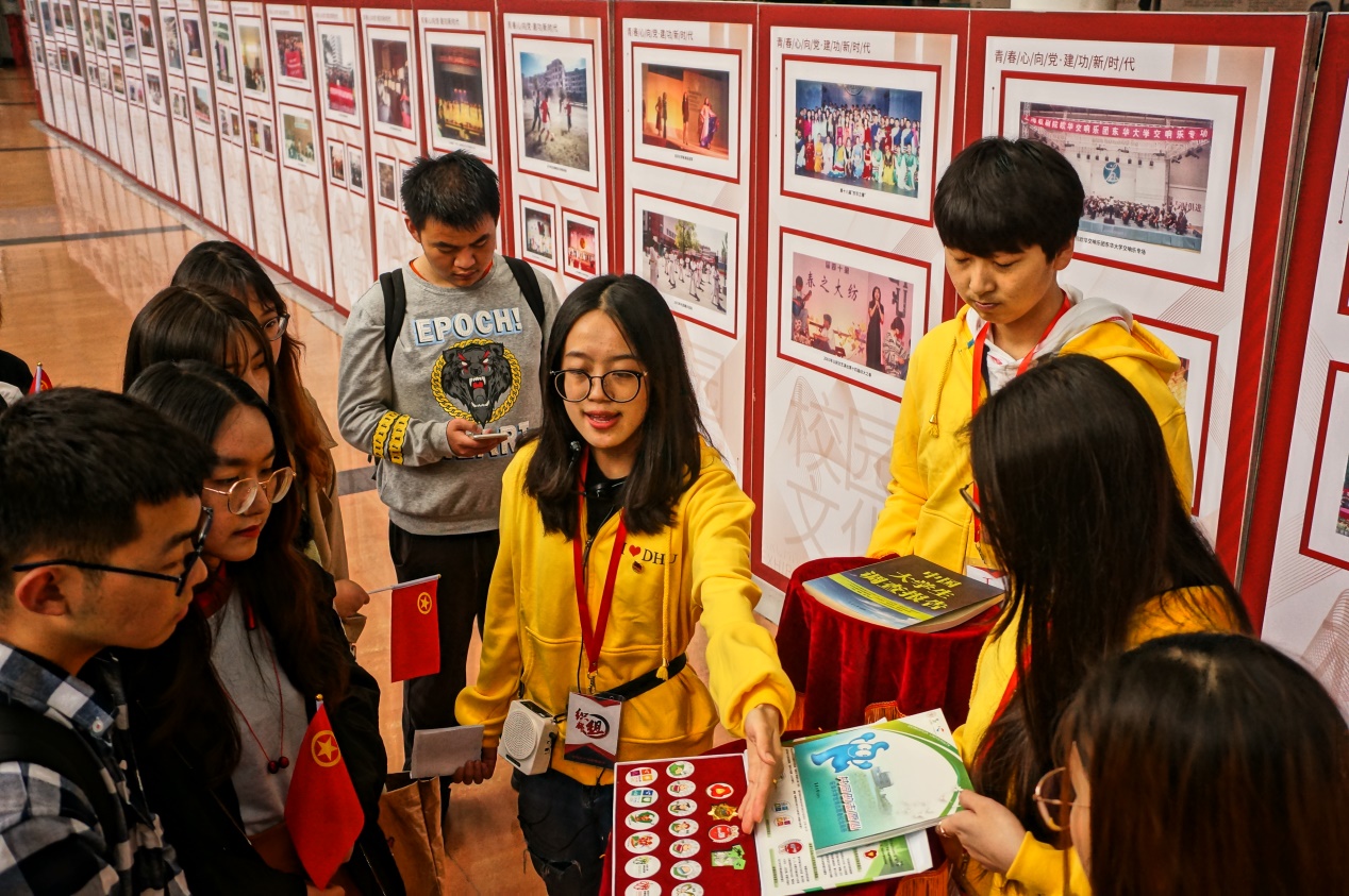 据悉,早在1951年,华东纺织工学院建校时,就建立了新民主主义青年团,1957年5月,改名为中国共产主义青年团,目前已举办三十八届十大歌手、三十四届“东华之春”文艺汇演、二十二届研究生“经纬韵”科技文化节、十九期团校、十七届“华英苑”大学生骨干培训班、十六年共计338期“周周讲”,送出十六批西部计划志愿者、十六届“挑战杯”大学生课外学术科技作品。传承青年精神,必须以史为师、不忘初心,在五四运动100周年即将到来之际,前来参观的师生纷纷拍照留念,不少老师在展板中找到了自己的青春身影,同学们更感怀不同年代学长学姐的青春力量,决心朝着时代梦想,接力奋斗。