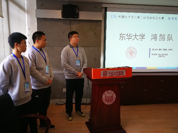 (学生在中国大学生机械工程创新创意大赛2018年智能制造邀请赛答辩现场)