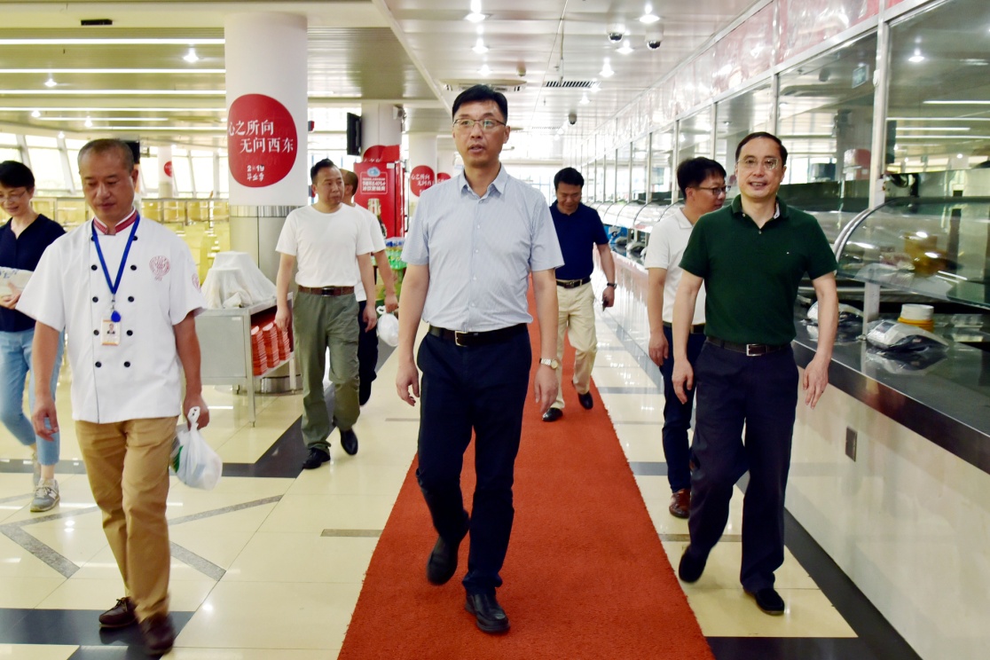 刘承功一行还走访了松江校区第一食堂和第25号宿舍楼,并与食堂工作人员和宿管人员亲切交流,了解暑期食堂和宿舍生活服务设施运行与保障情况。刘承功表示,后勤服务部门面对一线师生多样化需求,夏季高温酷暑,更需要细心、耐心和责任心,希望学校相关部门努力做好暑期服务工作,为师生提供安全有序、温馨整洁的工作学习环境。